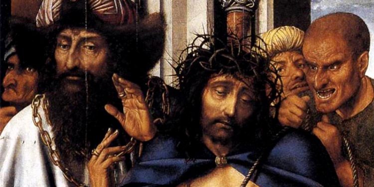 Në çastin që, duke abuzuar me pushtetin tënd dhe duke vepruar në mënyrë të padrejtë, ke dënuar me vdekje Jezu Nazaretin, e përpara dënimit me vdekje ua ke dorëzuar Judejve të egjër dhe të xhindosur e nuk ke patur mëshirë për këtë njeri të drejtë, por duke ngjyer penën ke shkruar një vendim të padrejtë dhe e ke fshikulluar e ke ofruar për kryqëzim çka se ai ishte i pafajshëm, duke pranuar edhe dhurata për dënimin e tij, e, ndërsa me gojë tregoje simpati për të, brënda zemrës sate e tradhëtoje në favor të Judejve të pabesë, për të gjitha këto do të sillesh i prangosur përpara meje, që të justifikohesh e të japësh llogari për jetën e pafajshme që ke çuar drejt vdekjes.