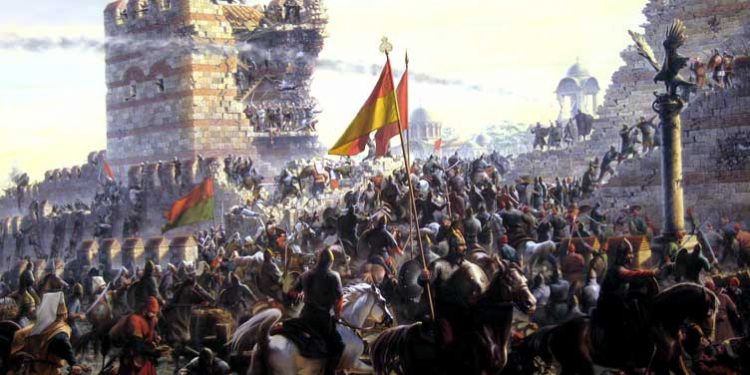 Kostandinopoja dukej e pathyeshme. Pavarësisht më shumë se njëzet rrethimeve, ushtritë e vetme që pushtuan Kostandinopojën ishin ato të kryqëzatës së katërt dhe ata ia dolën vetëm me dinakëri. Në 1204, pjestarët e kryqëzatës, duke pohuar miqësi me vëllezërit e tyre të krishterë, i ankoruan anijet e tyre në Bririn e Artë, që ishte porti i qytetit. Më pas, hipën me shkallë në muret që në atë anë të qytetit ishin të ulëta, dhe e plaçkitën. Kështu që në 1453, kur sulltan Mehmeti II dhe ushtria e tij turke rrethoi qytetin, mbrojtësit e tij bllokuan hyrjen e Bririt të Artë me një zinxhir hekuri, të lidhur me disa lundra. Kjo do të thoshte që Mehmetit do t’i duhej të depërtonte në muret e anës perëndimore të qytetit. Për ta bërë këtë, ushtritë e tij do t’i duhej që së pari të kalonin një hendek me ujë, ishte 18.5 metra i gjerë. Pastaj ata do të duhej të kapërcenin një mur me gurë 9 metra të lartë, 21 metra të trashë, ndërkohë që mbrojtësit e qytetit i bombardonin me gurë, shtiza dhe vaj të nxehtë. Kushdo që arrinte të kalonte do të gjendej i bllokuar në mes të murit të jashtëm dhe një muri të brendshëm, 12 metra të lartë dhe 18 metra të gjerë. Të shpërndara brenda hapësirës së këtyre dy mureve ishin 96 kulla. Askush nuk e kishte thyer ndonjëherë. Edhe Atila, kur kish parë mbrojtjen e qytetit, kishte urdhëruar hunët e tij që të tërhiqeshin.