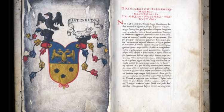 Tekstin e Statuta Scodrae e paraprin një Privilegium Alexandri Magni Macedonis, ku shkruhet se Aleksandri i Madh u pati lënë popujve ilirë, si trashëgimi të pazgjidhshme, zotërimin e trojeve në të cilat do të rronin; në gjirin e këtyre popujve bënin pjesë dhe ai maqedonas/epiriot/shqiptar. Privilegium-i është një tekst apokrif, i rremë pra, por që na shtjellon bindshëm fatin e madh që pati miti i Aleksandrit të Maqedonisë edhe në hapësirën sllave. Nëna e Aleksandrit, Olimbia, ishte me prejardhje nga Epiri, që pjesërisht shtrihet në Shqipërinë e sotme, duke hedhur kështu fijet lidhëse mes Aleksandrit dhe Shqipërisë, një lidhje kjo që sillej në vëmendje gjithë sa herë mëtohej kremtimi i ngjarjeve të moçme të Maqedonisë. Kështu, për shembull, shprehej humanisti Giorgio Merula teksa rrëfente mbi rrethimin e parë të Shkodrës në vitin 1474: “është pushtuar Maqedonia të cilën në kohë më të vona e kanë quajtur Arbëri”.