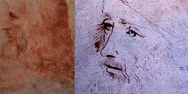 Një skicë e një njeriu me mjekër, në pronësi të Koleksionit Mbretëror, është ‘identifikuar’ si portreti i artistit dhe shpikësi. Pamja, në të cilën konturon në këtë skicë mjeshtri “duket pak melankolik dhe i lodhur”, besohet se kjo skicë të jetë realizuar pak para vdekjes së tij, diku në fillimvit të 1519. Martin Clayton, autoritet arti i Trustit të Koleksionit Mbretëror, identifikoi fytyrën ndërsa përgatiste vizatime, të ruajtura në Ëindsor Castle, për ekspozitën.