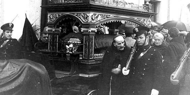 Si vetëtimë u-perhap an’e kand të Shqipnisë lajmi i idhët i vdekjes së poetit t’onë kombëtar At Fishtës dhe e mahnitun mbetet sot mbarë bota shqiptare, tue kujtue emnin zâmadh t’auktorit të Lahutës së Malcisë, që ka këndue, si dikur Omeri, burrnin’e besën e fisit t’onë, që ka ndezë zemrat e Shqiptarëvet, si dikur Tirteu i vjetërsisë.