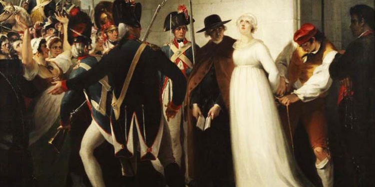 Populli që mbush dy anët e rrugës e përcjell me shastisje këtë poshtërim Asnjë thirrje apo tallje. Mbrëtëresha arrin të përshkojë solemnisht këtë panoramë heshtjeje deri tek karroja. Pranë saj ulet prifti Zhirard i veshur civil dhe xhelati që nuk toleron azgjë në kryerjen e detyrës mizore. Ai ka një shprehi fytyre të padepërtueshme si Karonti, thotë Cvajgu, i cili shoqëronte shpirtrat e të vdekurve, edhe ky shpie ashtu i shterrur nga çdo ndjesi çdo ditë ngarkesën e tij deri në bregun e tejmë të jetës. Por këtë herë edhe ky xhelat, edhe ndihmësit e tij gjatë gjithë udhëtimit mbajnë kasketën nën sqetull sikur rrekeshin të shfajësoheshin për detyrën e tyre të neveritshme përpara gruas së pafuqishme, që po e marrin zvarrë deri në vendin ku do t’i pritet koka.