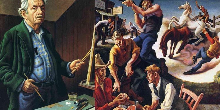 Thomas Hart Benton (15 Prill 1889 – 19 Janar 1975) ishte një piktor dhe muralist amerikan. Së bashku me Grant Wood dhe John Steuart Curry, ai ishte në ballë të lëvizjes rajonale të artit. Shifrat e lëngshme, të skalitura në pikturat e tij treguan njerëz të përditshëm në skena të jetës në Shtetet e Bashkuara. Puna krijuese të Benton janë të lidhura organikisht dhe shpirtërisht, thelbësisht dhe psikologjikisht me Shtetet e Bashkuara, në veçanti me Midwwest, rajonin në të cilin ai lindi dhe që ai e quajti shtëpi për pjesën më të madhe të jetës së tij. Ai gjithashtu studioi në Paris, jetoi në New York City për më shumë se 20 vjet dhe pikturoi një sërë punimesh atje, të përmbledhura për 50 vjet në Martha’s Vineyard jashtë Anglisë së Rebregdetit, dhe gjithashtu pikturoi skena të Amerikës së Jugut dhe të Perëndimit .