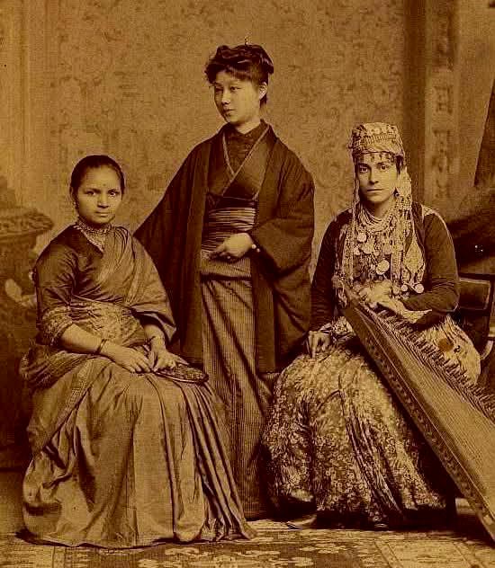 Në këtë fotografi të tetorit 1885, shfaqen tre personifikime force dhe shpirti ngulmues që thyen zinxhirët e kohës: Dr. Anandi Gopal Joshi nga Saranysore, Indi; Dr. Kei Okami nga Tokio, Japoni; dhe Dr. Tabat M. Islambooly nga Damasku, Siri.
