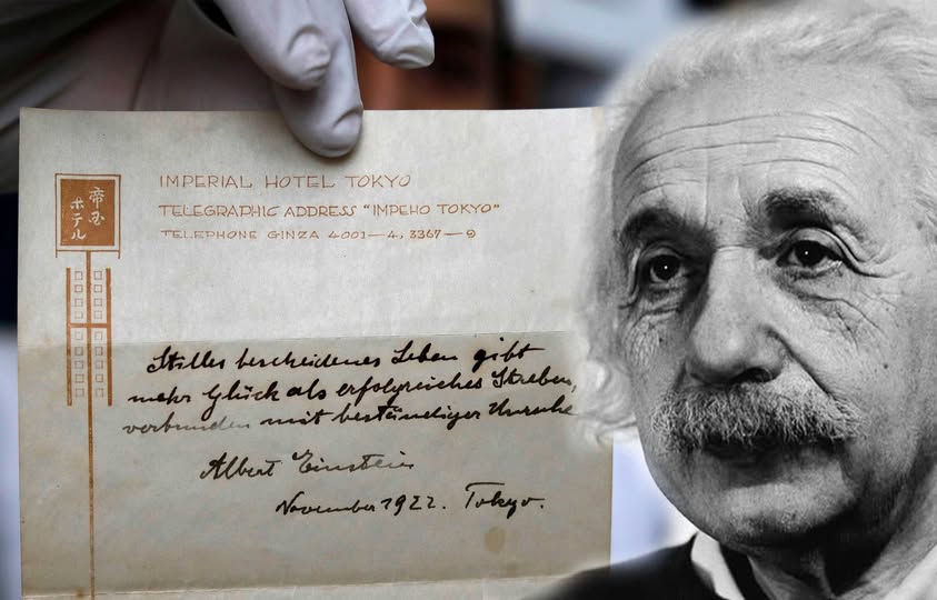 “Një jetë modeste sjell më shumë lumturi sesa kërkimi i suksesit i shoqëruar me shqetësim të vazhdueshëm.” Kjo ishte një frazë e lënë si bakshish në vitin 1922, e cila në vitin 2017 kushtoi 1.56 milionë dollarë. Sepse ajo ishte një shënim i lënë me dorën e tij nga Albert Ajnshtajn, që ishte jo vetëm mëndja më e ndritur, por edhe zemra më e bardhë dhe shpirti më i bukur, që diti të na japë jo vetëm një kuptim mbi universin, por edhe një ndjenjë të thellë dhe të pastër për njeriun gjeni.