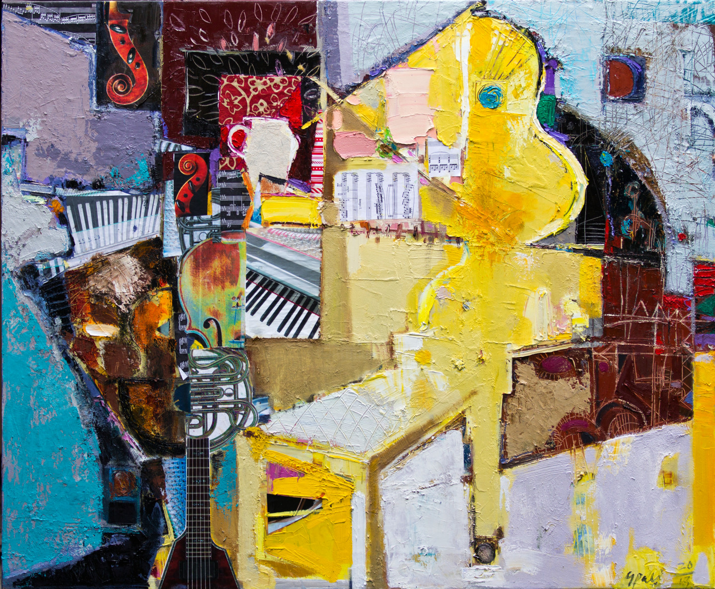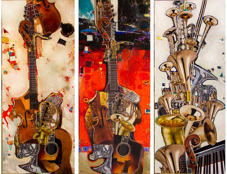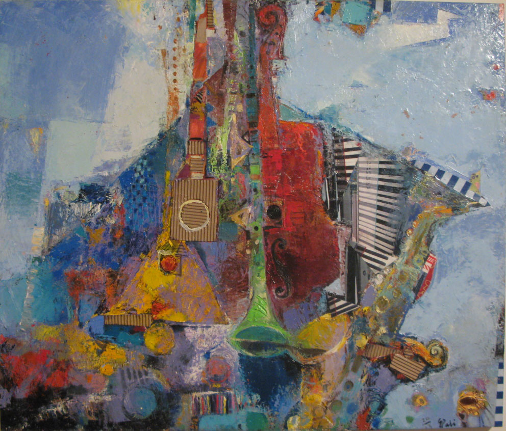 Në shumë prej pikturave të tij, ai përfshin kolazhe notash muzikore, fragmente instrumentesh, objekte të jetës së përditshme, duke krijuar kompozime që lëvizin ndërmjet reales dhe abstraktes, ndërmjet të njohurës dhe të panjohurës. Ai i quan këto kompozime “Jazz” ose “Klasike”, sipas ritmit që mbartin.