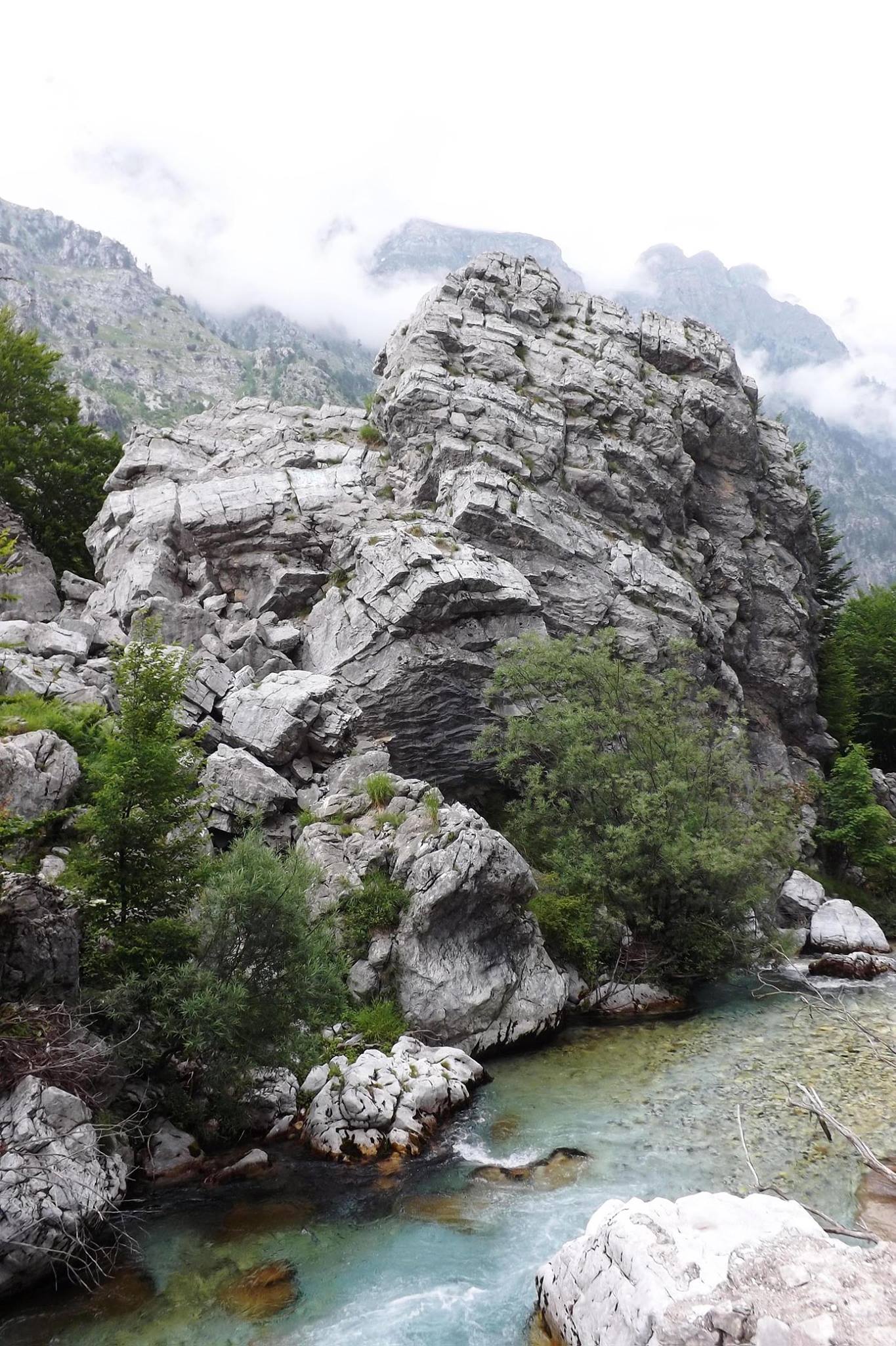 Ngërthimi i këtij vërshimi shkëmbor pas gurëve mitik, asht tharmi i një kompozimi të heshtur, që tue u përzi me fëshfërimën e gjetheve luejnë nji simfoni, kohët e së cilës i gjejm të shtresume në ngazëllimin që na pataks kjo melodo që mëkon pamja. Këto shkëmbinj ciklopik, që Zoti e din se si kanë shtruar gjithë atë udhë që merr përposhtë Valbona. Ata janë vetë epika e këtij motivi folklorik, kësaj piskame që na ngjeth me ngjyrën dhe thellësinë që cek.