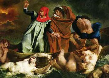 Dante dhe Virgjili, dy gjenitë italian të këndimit hyjnor poetik në udhëtimin e tyre në ferrin e “Komedisë Hyjnore”